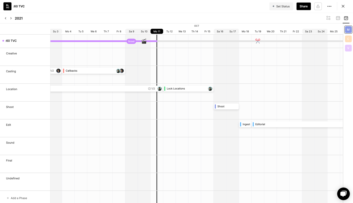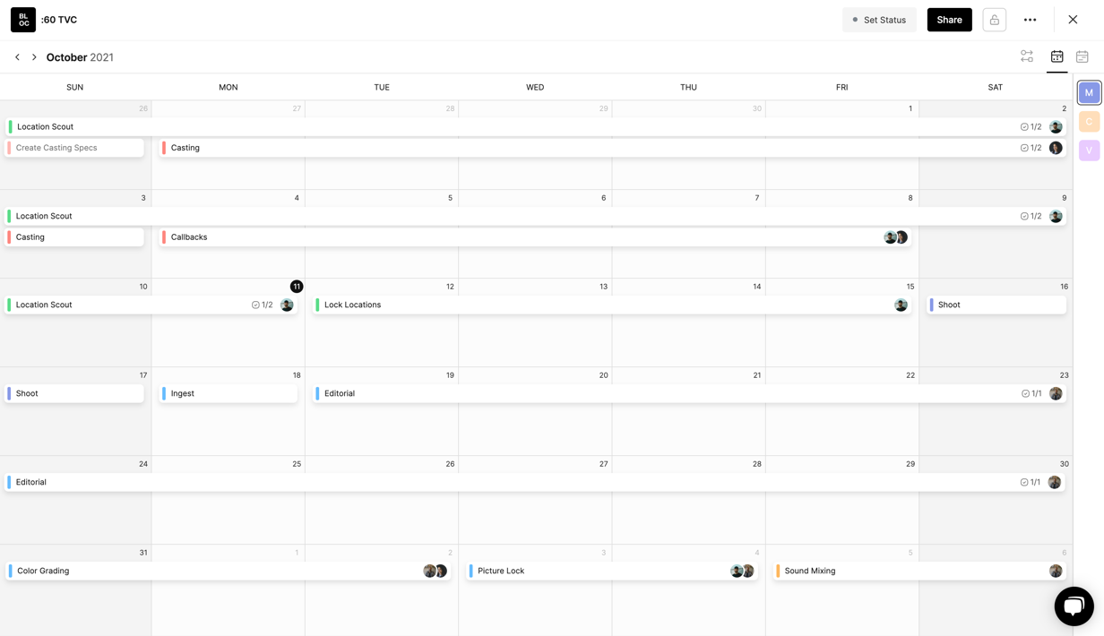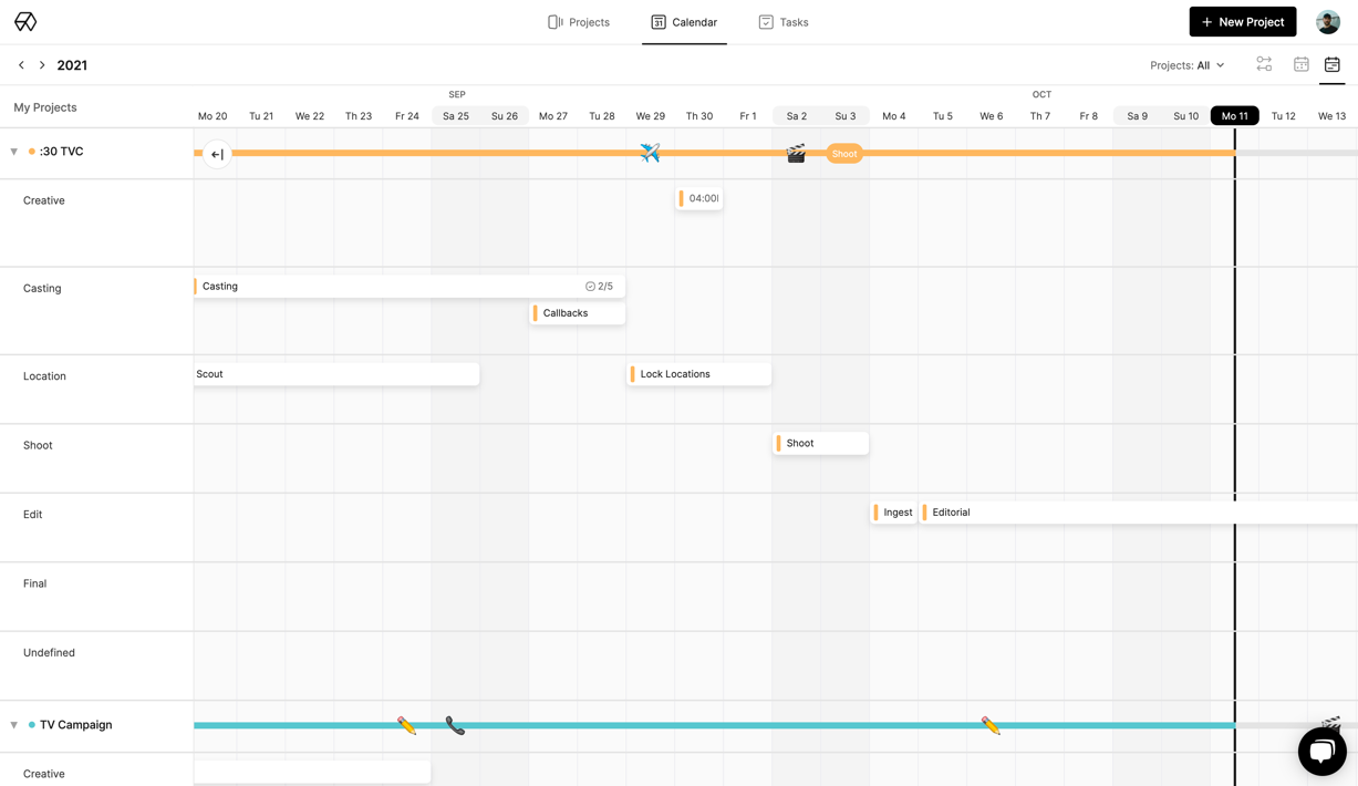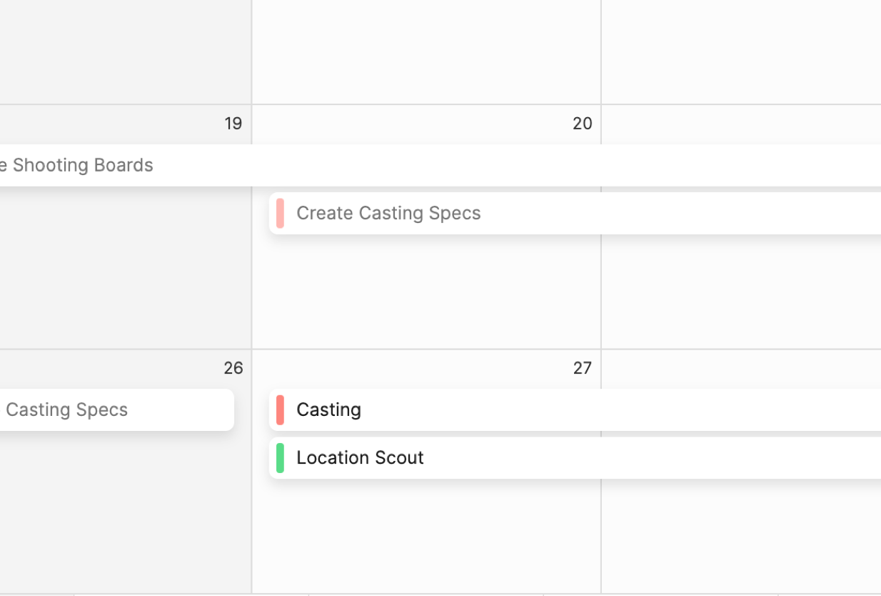 Any production calendar you create will also be added to your Global Calendar, where you can view, edit, and create events across all your calendars at once.