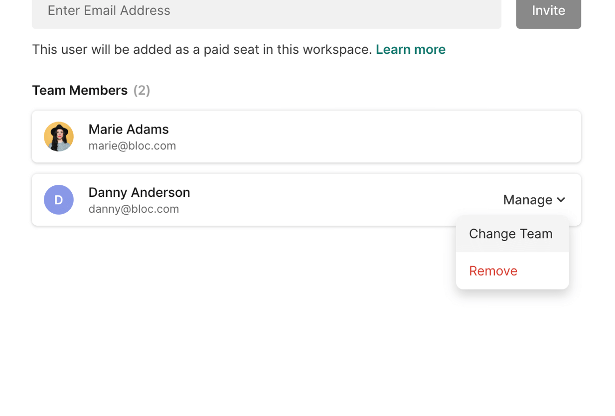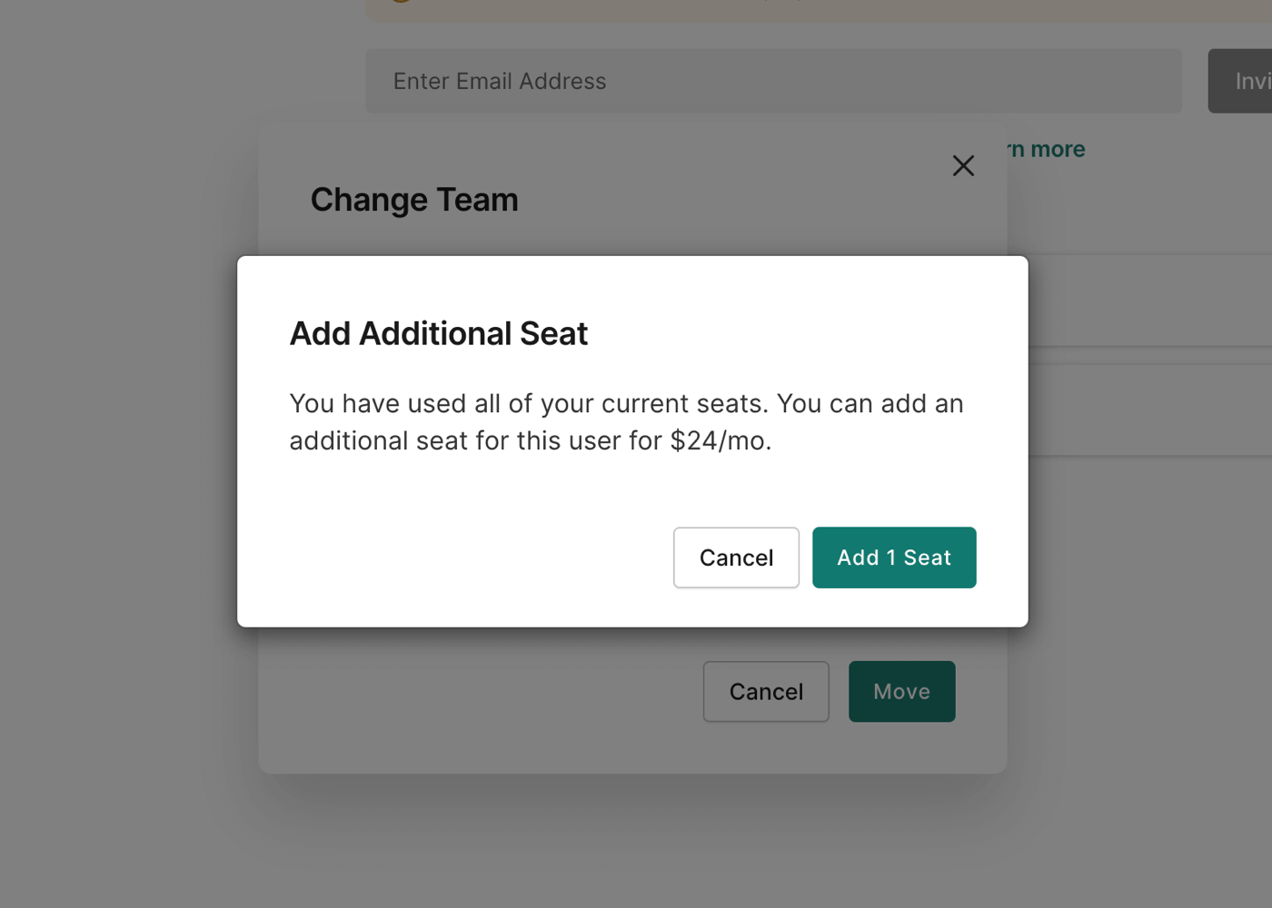Click Add 1 Seat to confirm the upgrade and they will be moved to the workspace team.