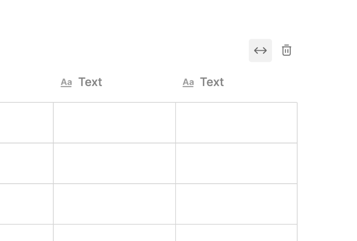 To delete a table, hover the table and select the Trash Can icon in the top right corner.