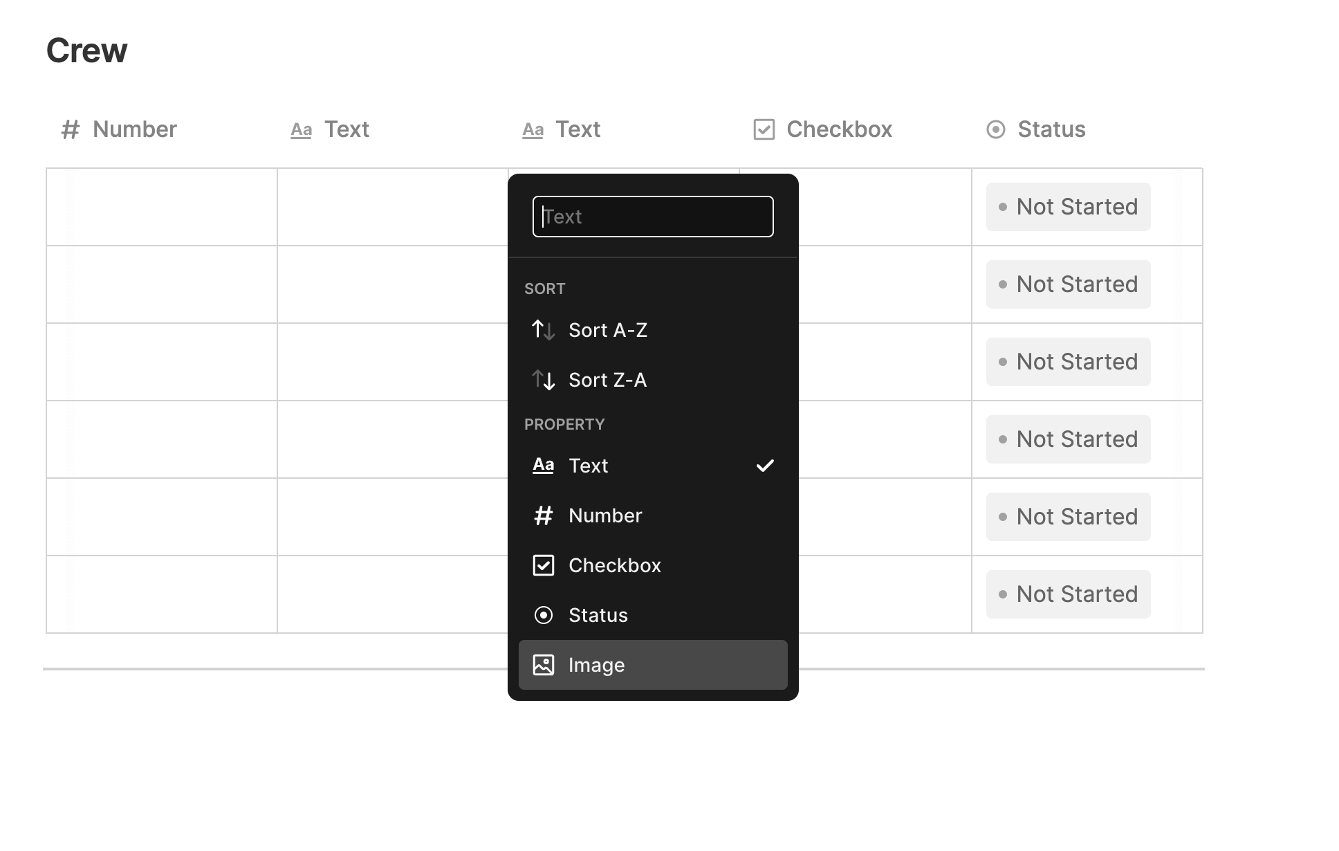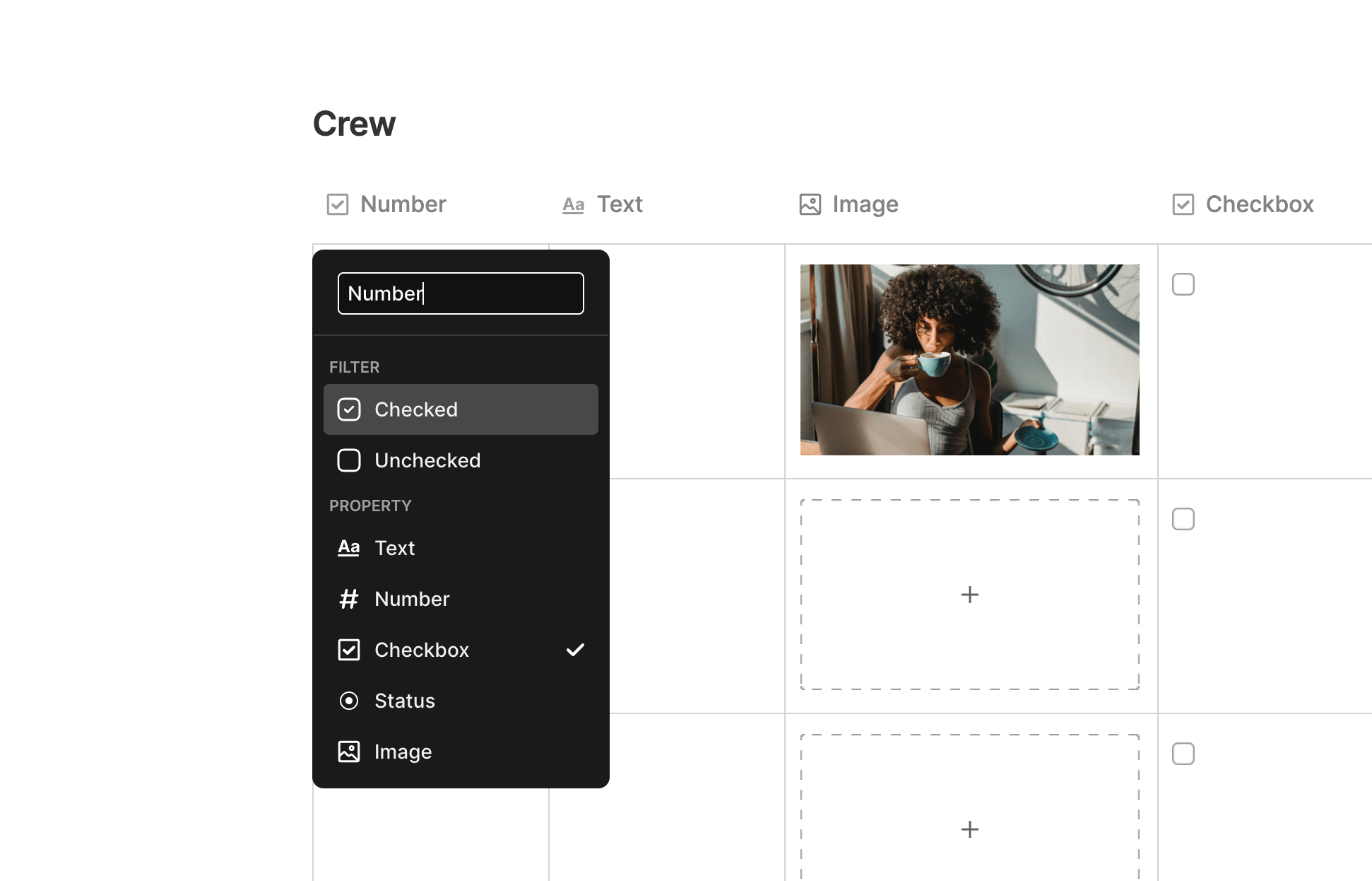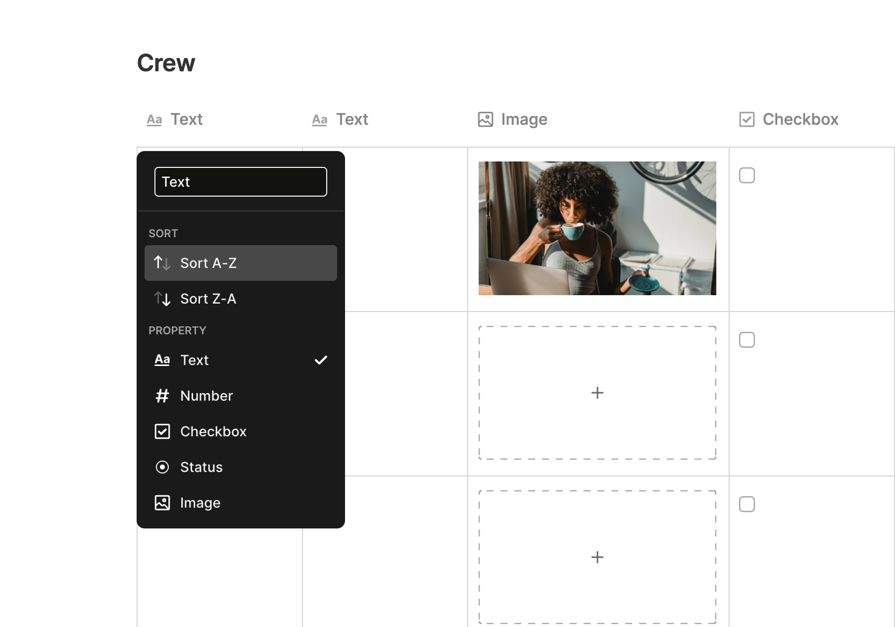 If you'd like to add images into your table, click any Column Header and select Image.