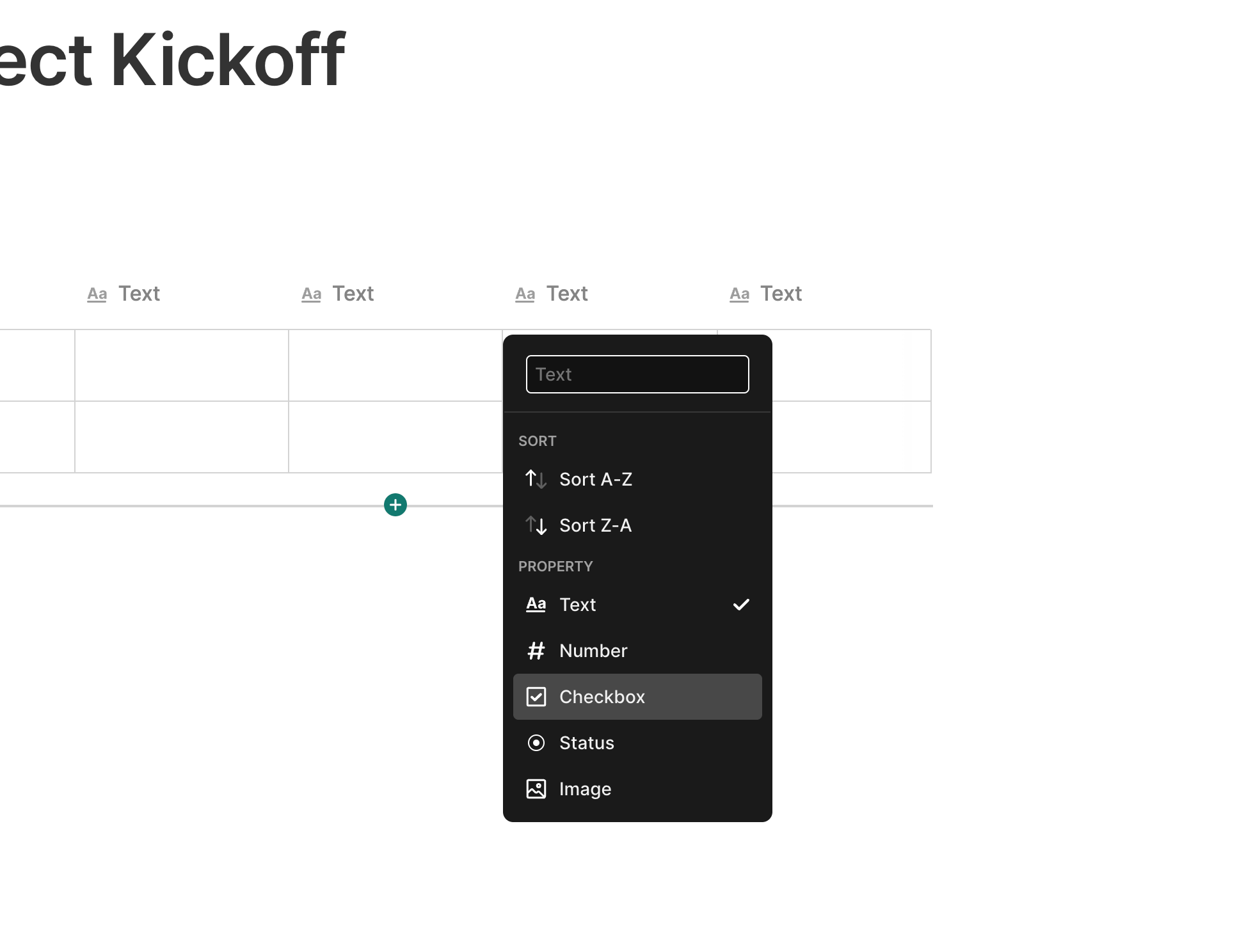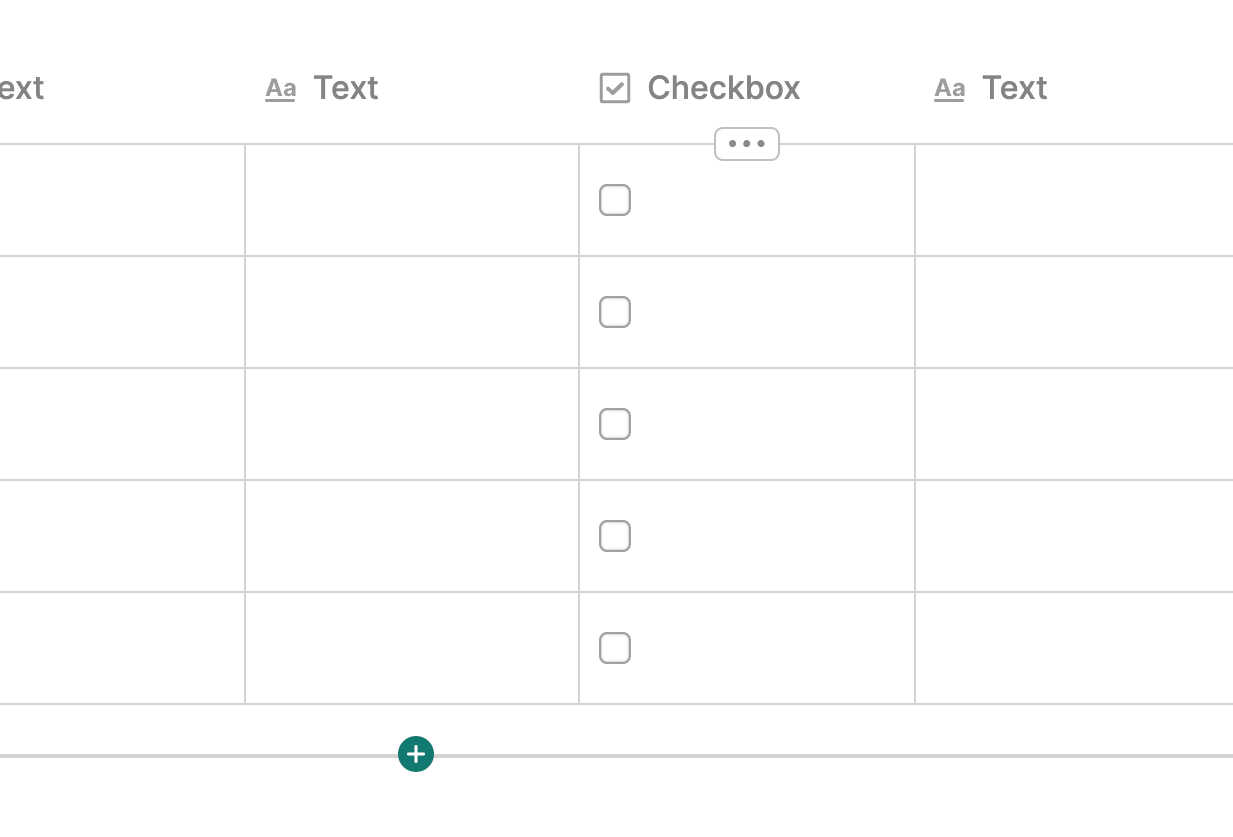 To add checkboxes to a table, click the Column Header of any column and then select Checkbox to change the Column Type to Checkboxes.