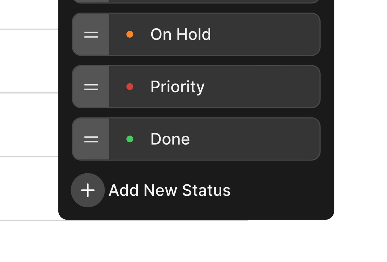 To create custom statuses, click a Status to open the Status Options and then select Edit Statuses.