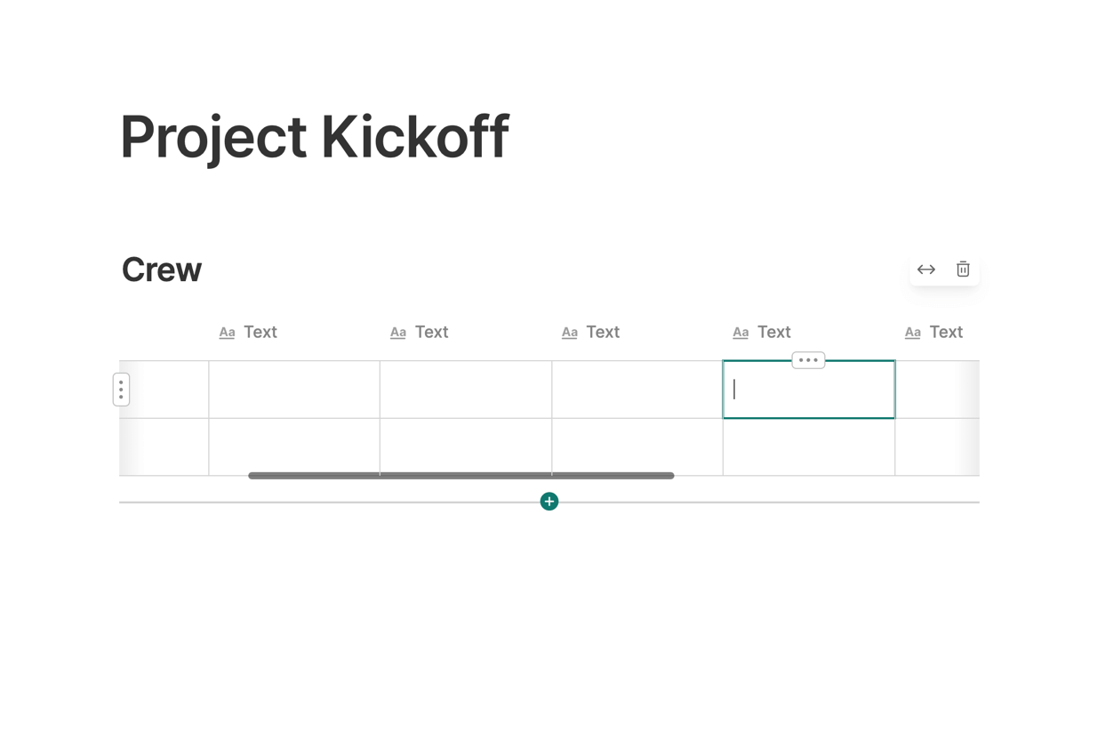 Once you've added new columns, the table will become scrollable left to right to accommodate the new columns.