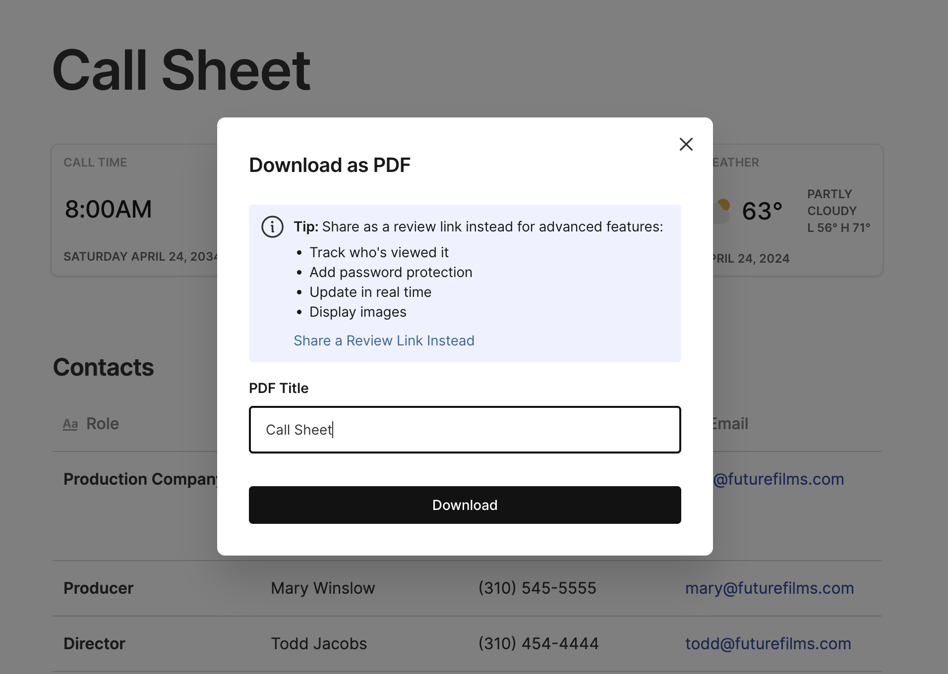 On the next screen, you can edit the Title for the PDF, and then click Download to export the PDF.