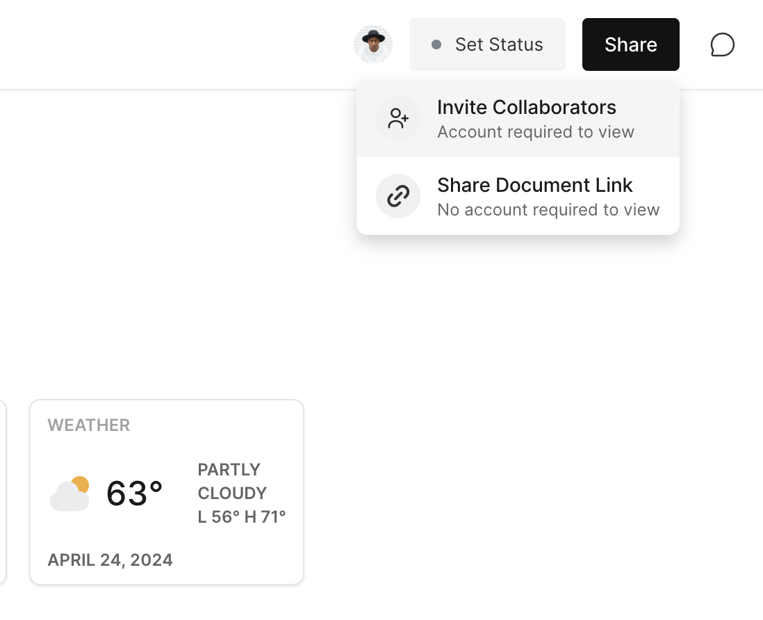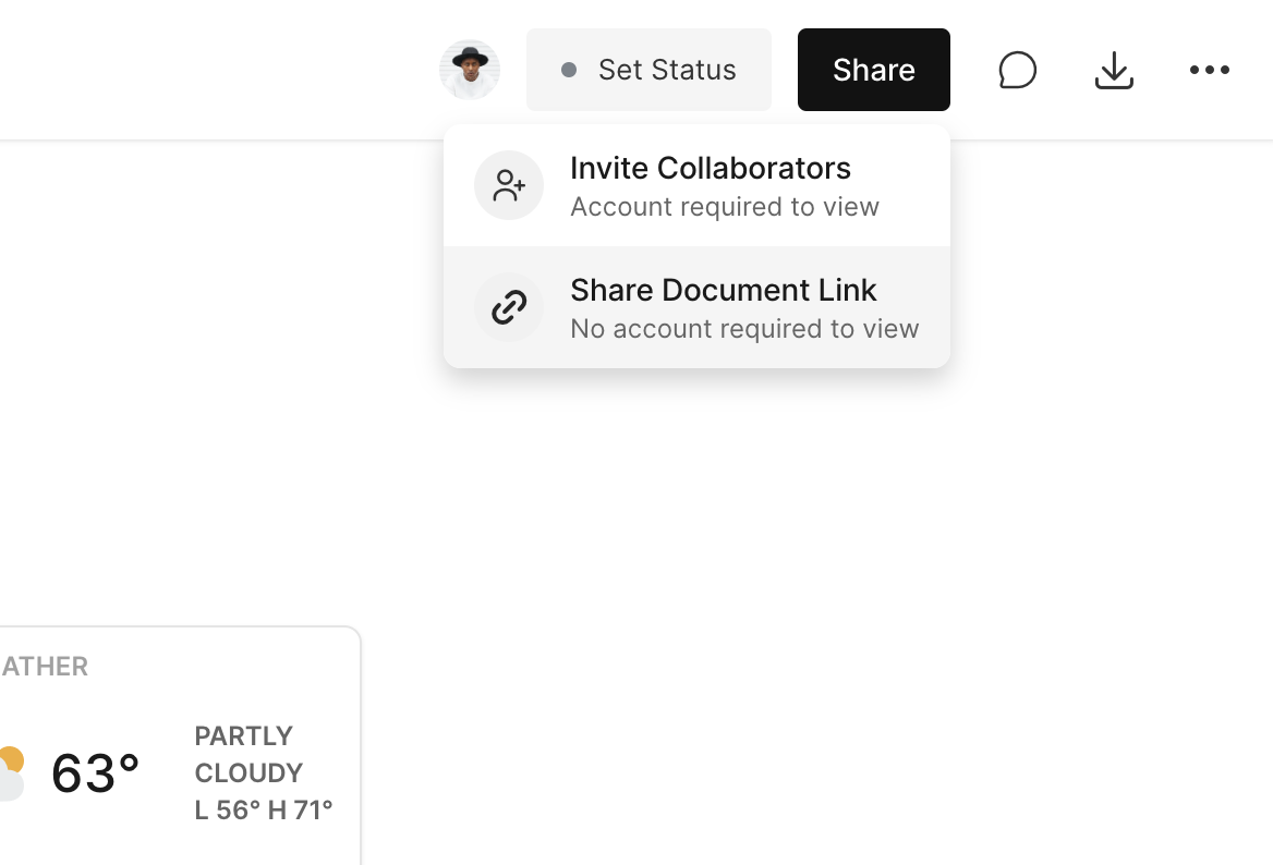 To change the export permissions for logged in users, open the document, click Share and choose Invite Collaborators.