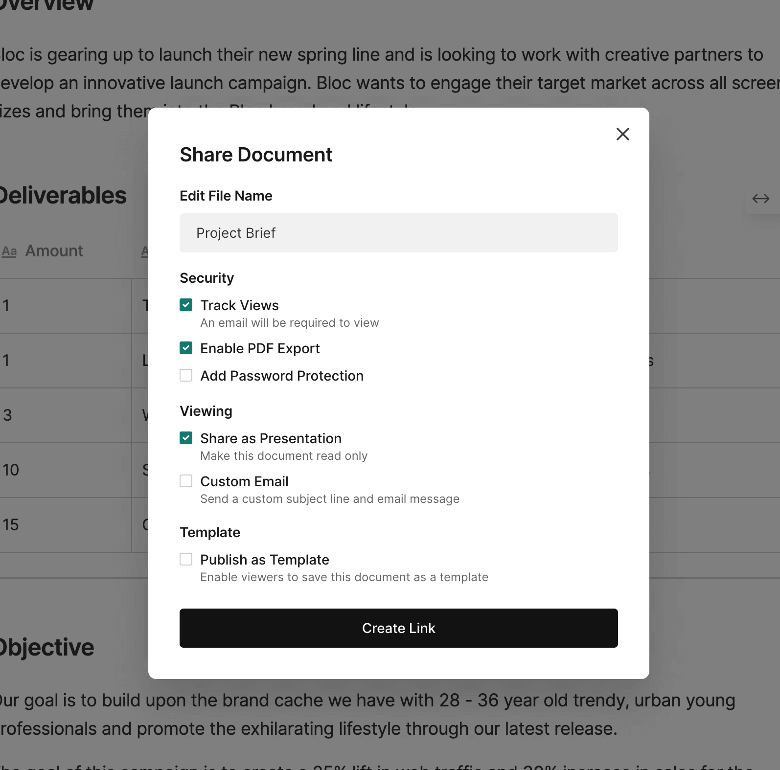 You can control who is able to export your documents as PDFs, both for logged in users and users viewing an external review link of the document.