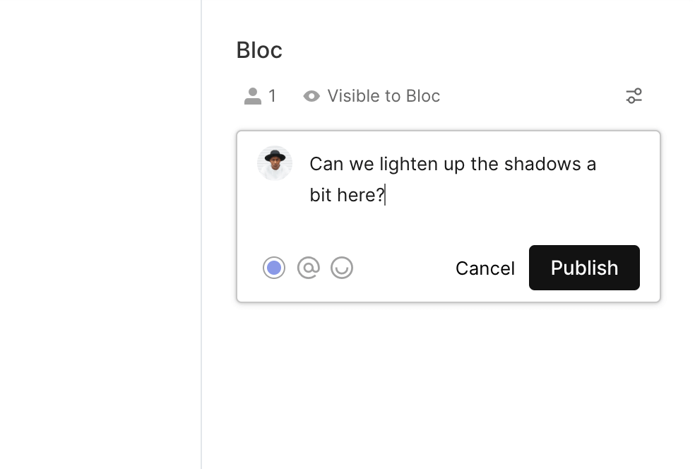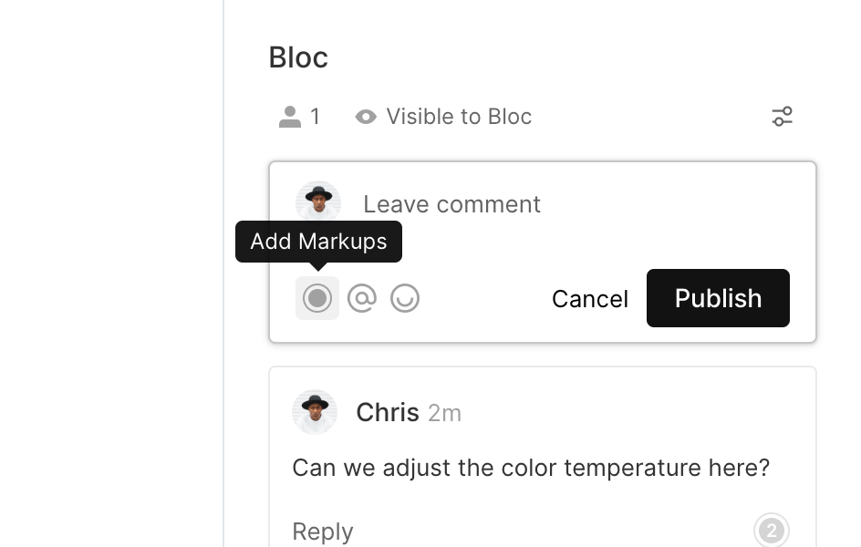 Once you have placed the markup, enter your comment into the comment field and click Publish to add the markup.