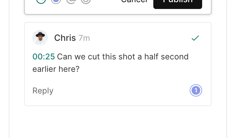 This will leave a visible green checkmark on the comment to let everyone know the comment has been completed. All users who have permission to view the feedback thread will be able to see the checkmark once it is added.
