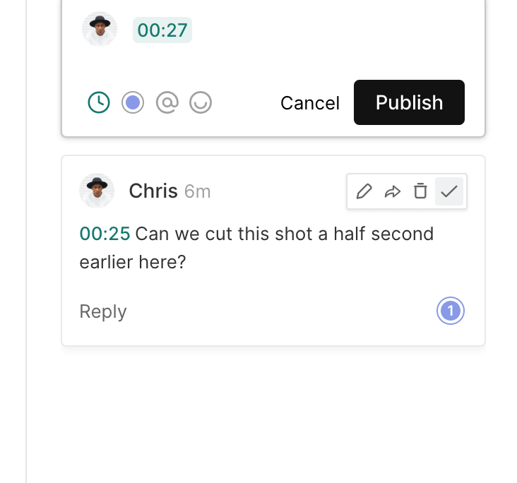 Once comments have been left on a file, you can track which comments have been addressed by simply clicking the Checkmark in the upper-right corner of each comment.