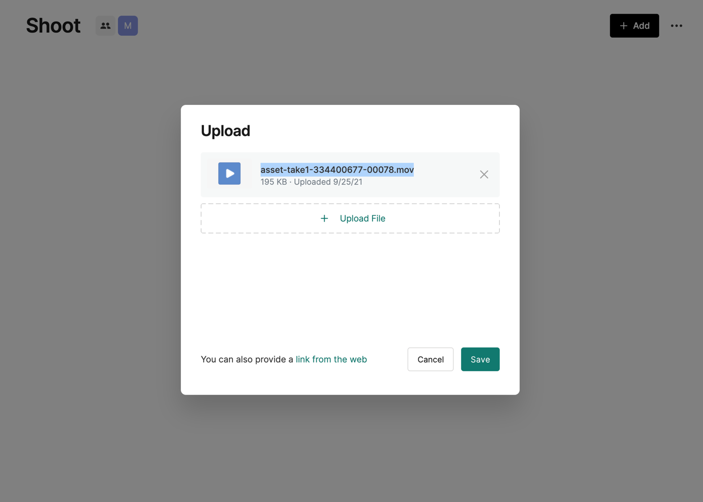Once you're done editing, press Enter or click away to save the name, then click Save to complete the upload. Your file will be added to your project with the new file name.