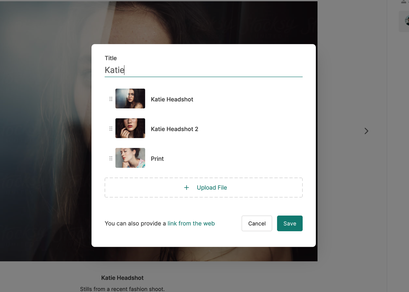 From here, enter the new Title to change the name of the gallery. To change the name of files within the gallery, click the File Name of each file and type the new file name, then press Enter or click away to save the name. When you're done, press Save to save your changes.
