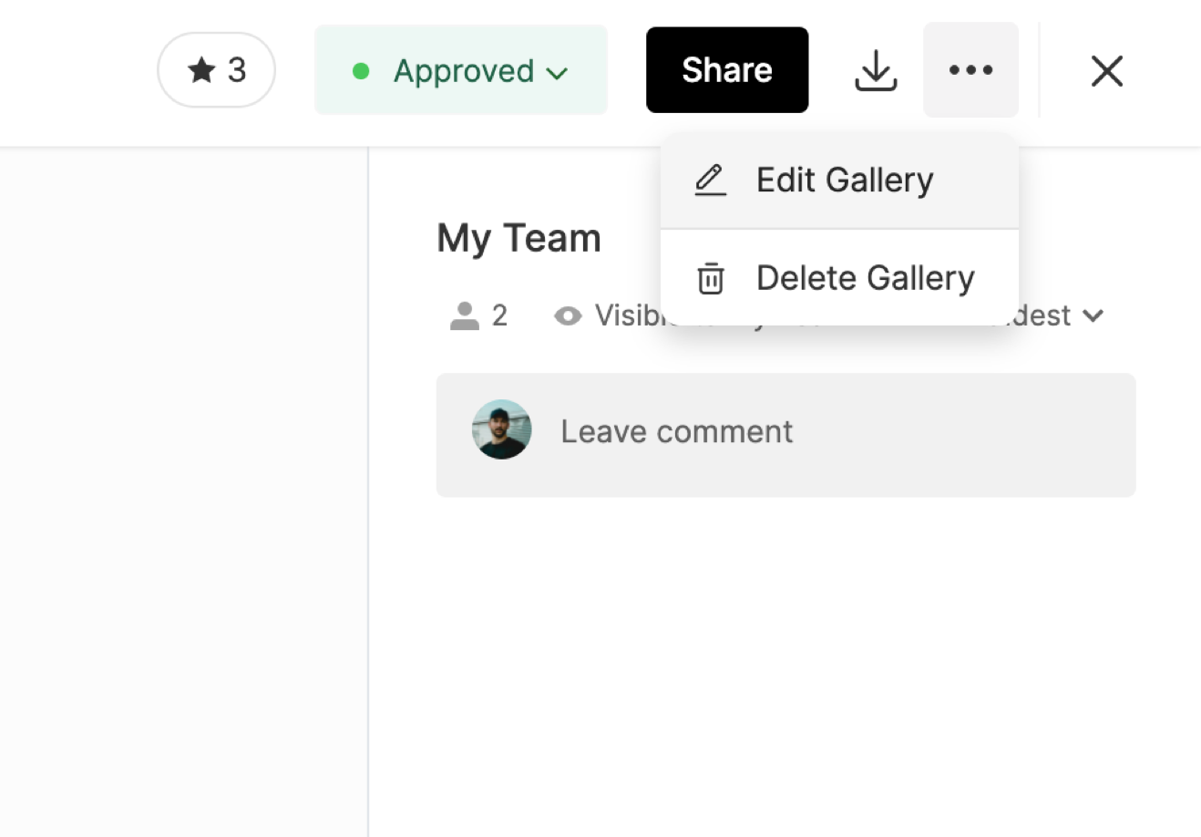 To change the name of a gallery, open the gallery and click the Three Dot Menu in the top right, and select Edit Gallery.