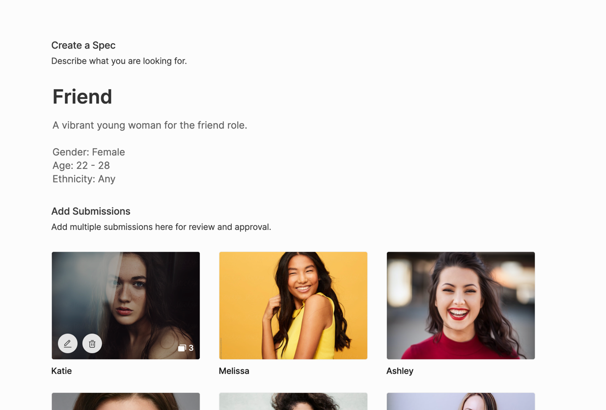 From here, you can click the Title or the Specifications to edit these details. You can also edit individual submissions by clicking the Pencil icon, or delete them by clicking the Trash icon. Once you're done editing, click Save.