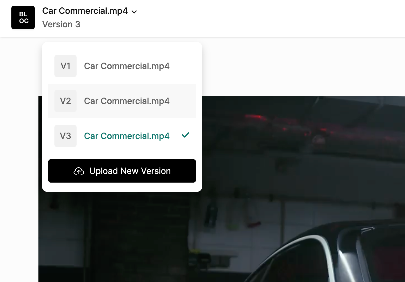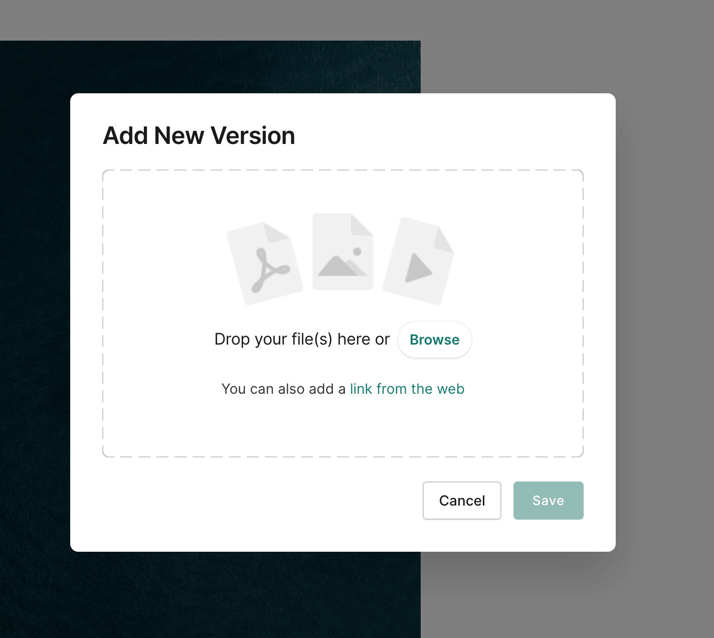 Select a new file from your computer to and click Save once the upload is finished to add the new version.
