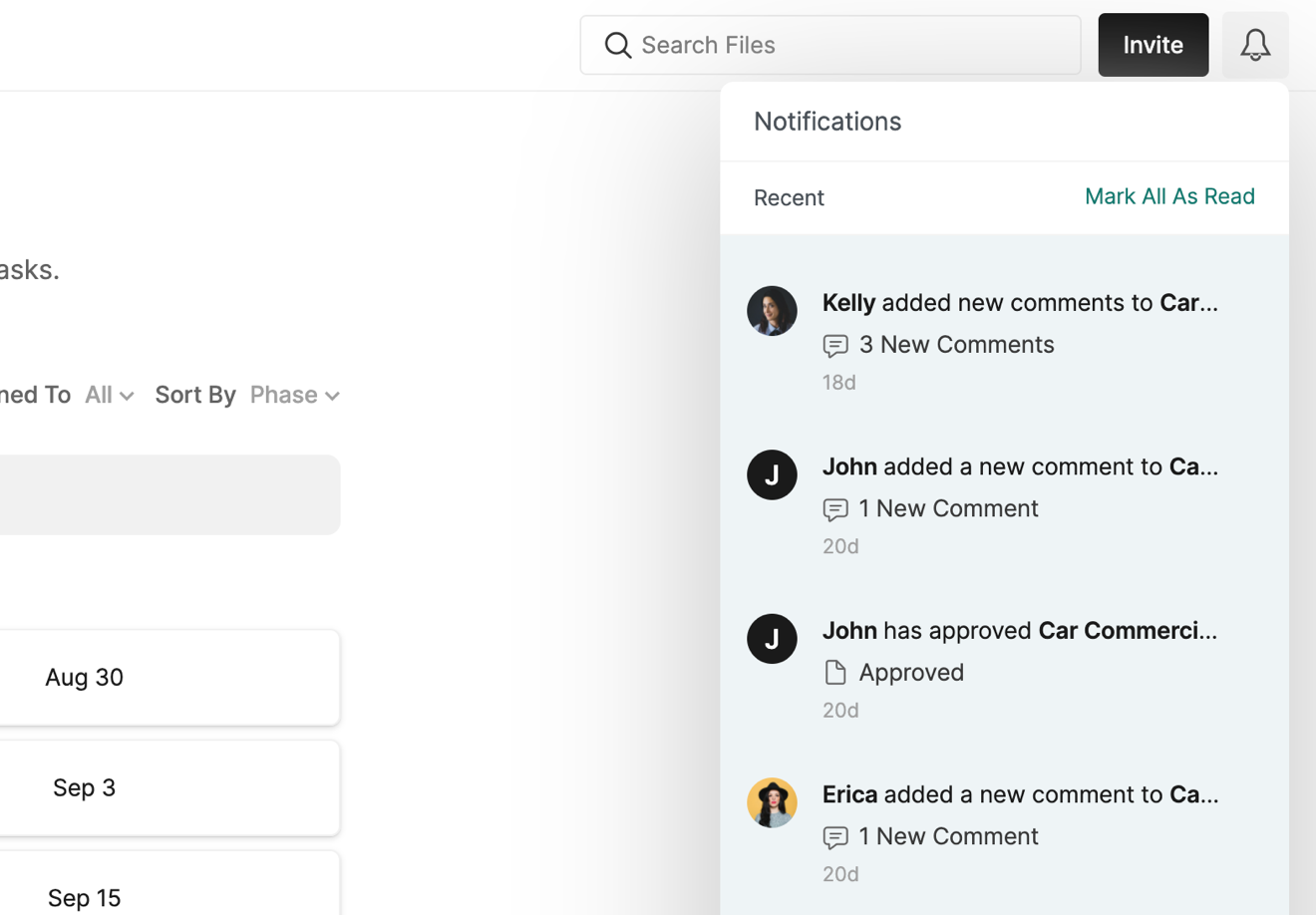 Additionally, new comment notifications will be displayed contextually within your projects to help you understand where new comments exist.