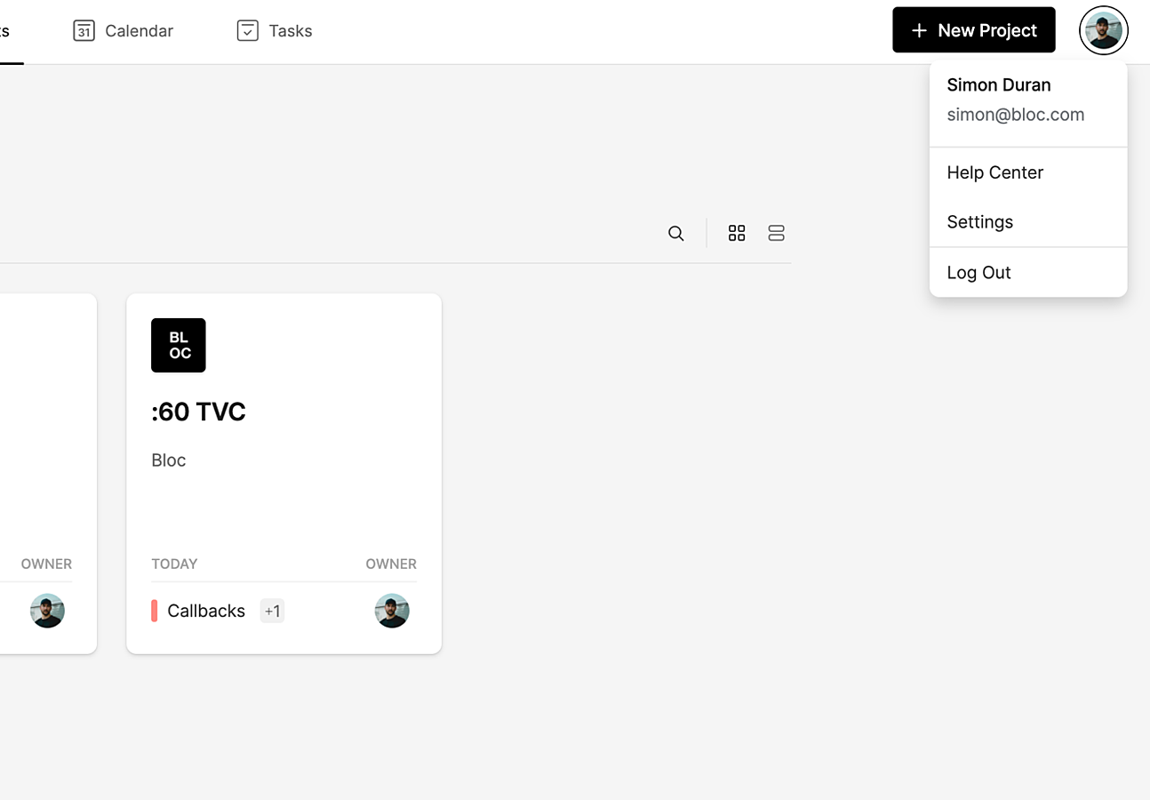 To manage your email notification settings, navigate to the Projects Dashboard, click your Profile Icon in the top right and select Settings.